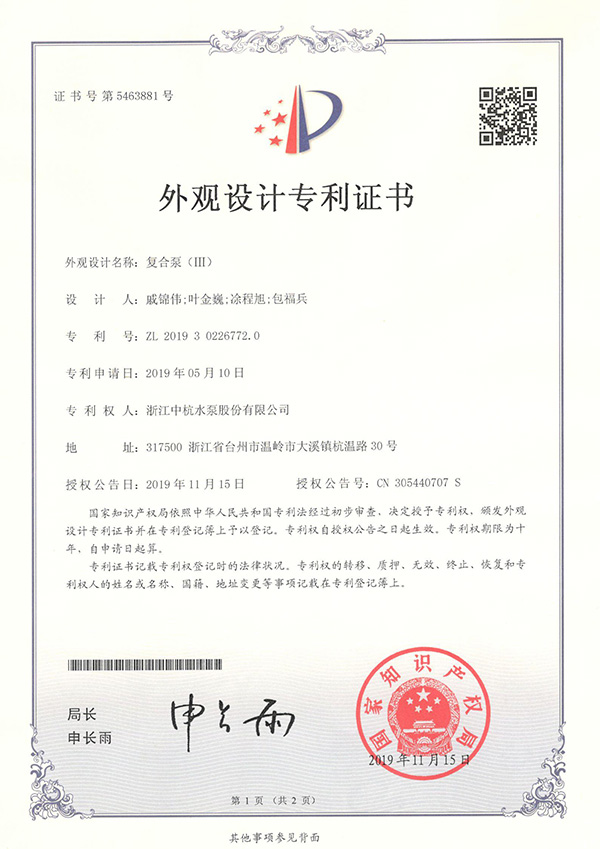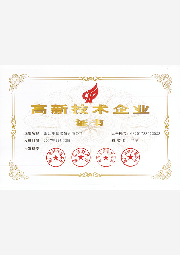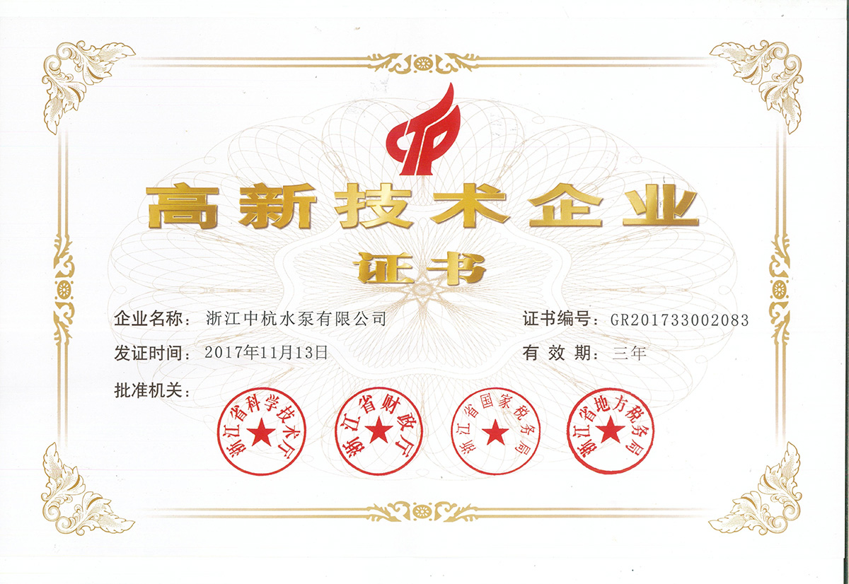 我們堅信"科學技術是第一生產(chǎn)力",不斷(duàn)提高產(chǎn)品的技術水平和科技含量,先後獲得數十項發明專利和(hé)實用新型專利,2016年獲批台州市級高新技術企業,2017年同時獲(huò)批省(shěng)級和國家級高新技術企業,2018年(nián)獲批(pī)"台州市級企業技術中心",2019年獲評(píng)台(tái)州(zhōu)市"瞪羚企(qǐ)業(yè)"和"溫嶺市百強企(qǐ)業",並當(dāng)選為"溫嶺市泵與電機標準化技術委員會"首屆委員單位,發展後勁不斷(duàn)增強。